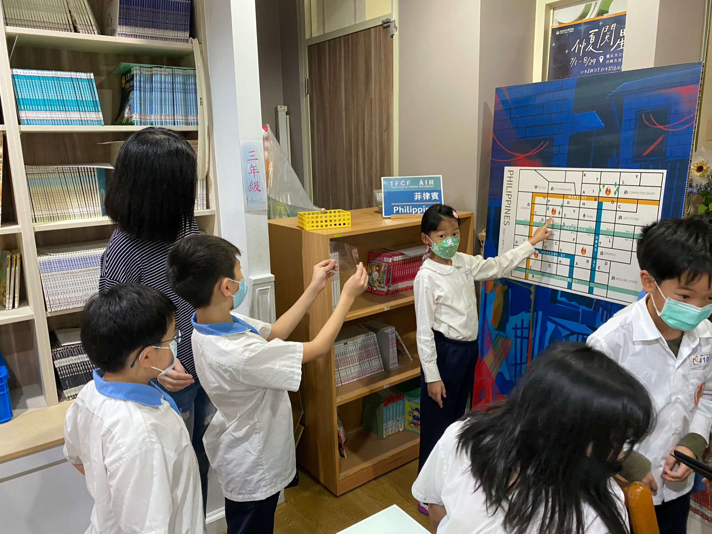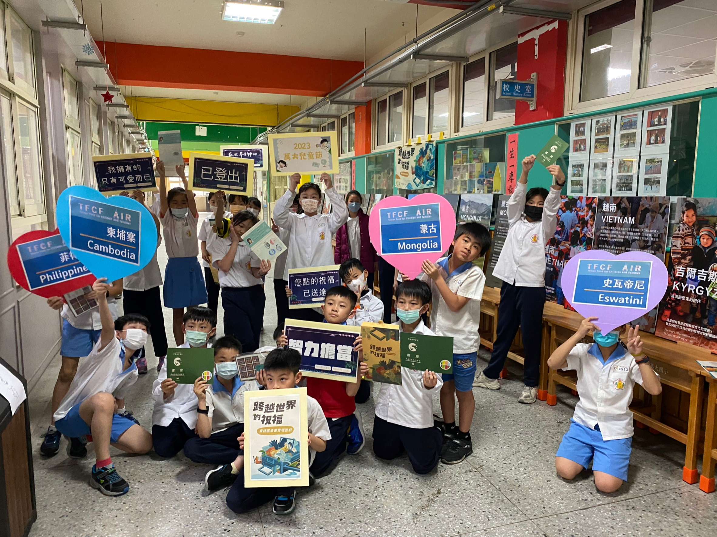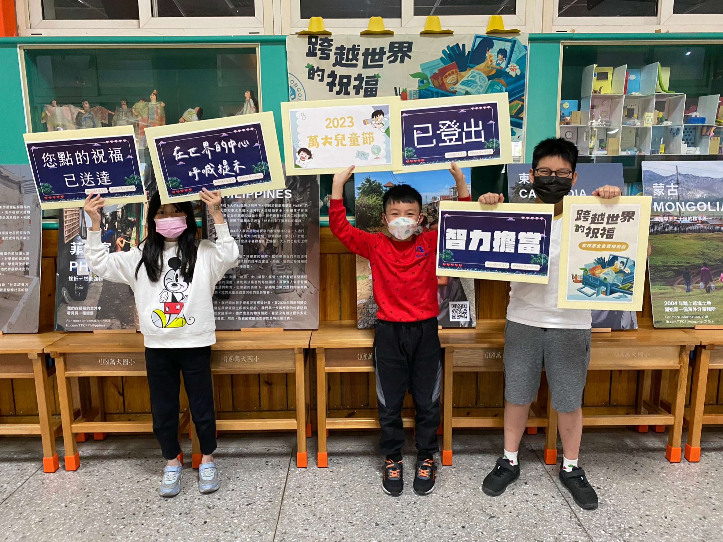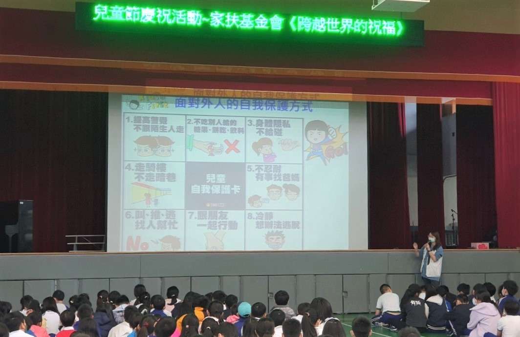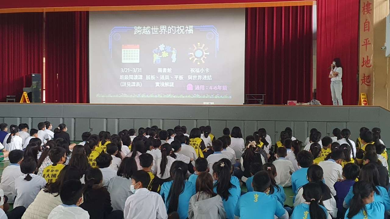 其中,「跨越世界的祝福」展覽暨實境遊戲活動,是本次活動的重點之一。本校與家扶基金會合作,讓孩子們透過遊戲,了解國際志工的服務意義與價值,並認識臺灣NGO組織如何在其他國家提供符合當地需求的協助。小朋友在解謎的過程中玩得渾然忘我,結束後紛紛表示,「原來我們在臺灣那麼幸福。」「這次的遊戲讓我學到如何團隊合作,也讓我知道有許多國家需要幫助。」同時,展覽場景也在校內圖書館設置,供全校親師生在圖書館認識國際議題,也邀請家扶基金會、皮皮兒童劇團蒞校宣導兒童權益及反霸凌觀念。