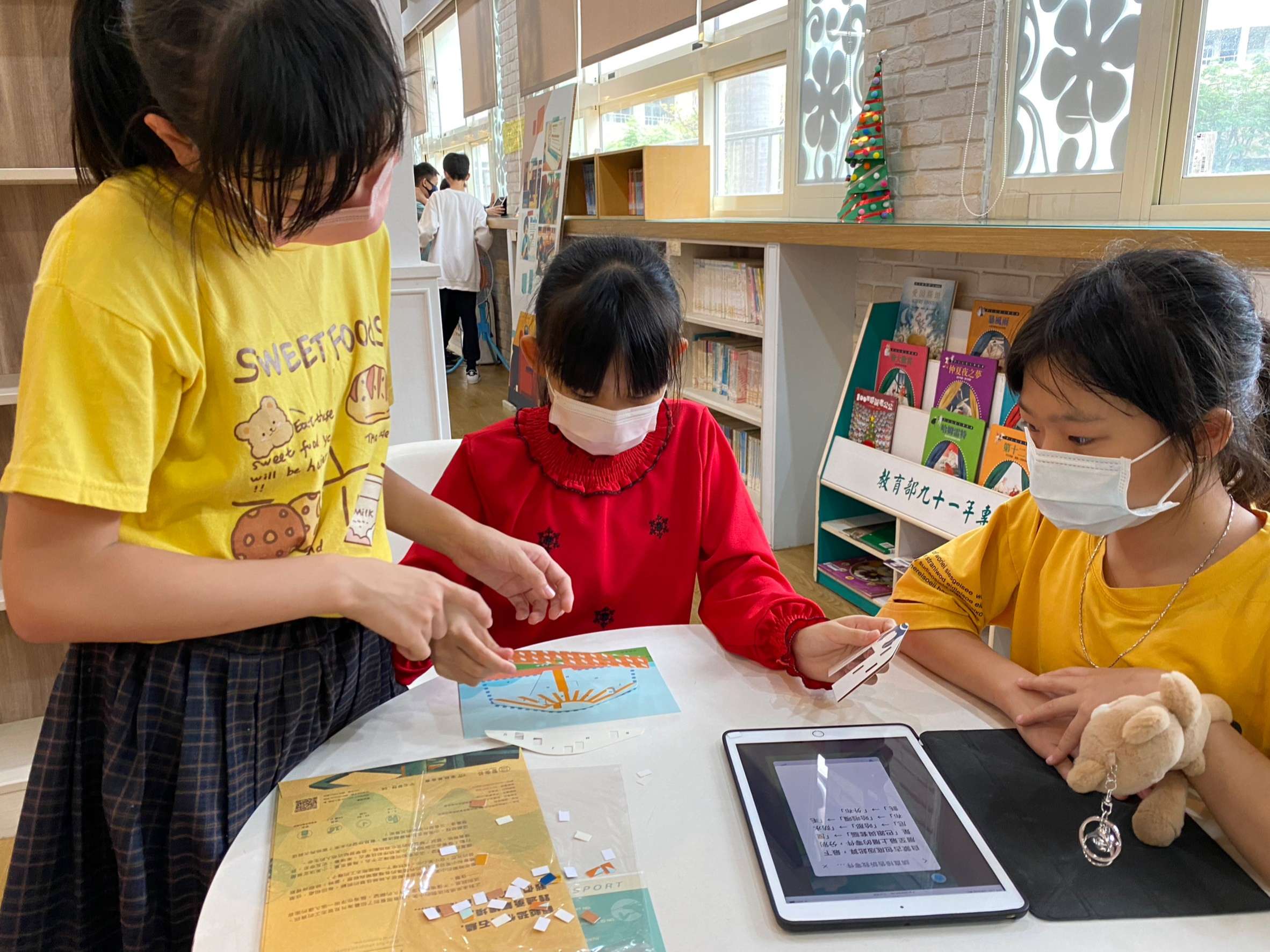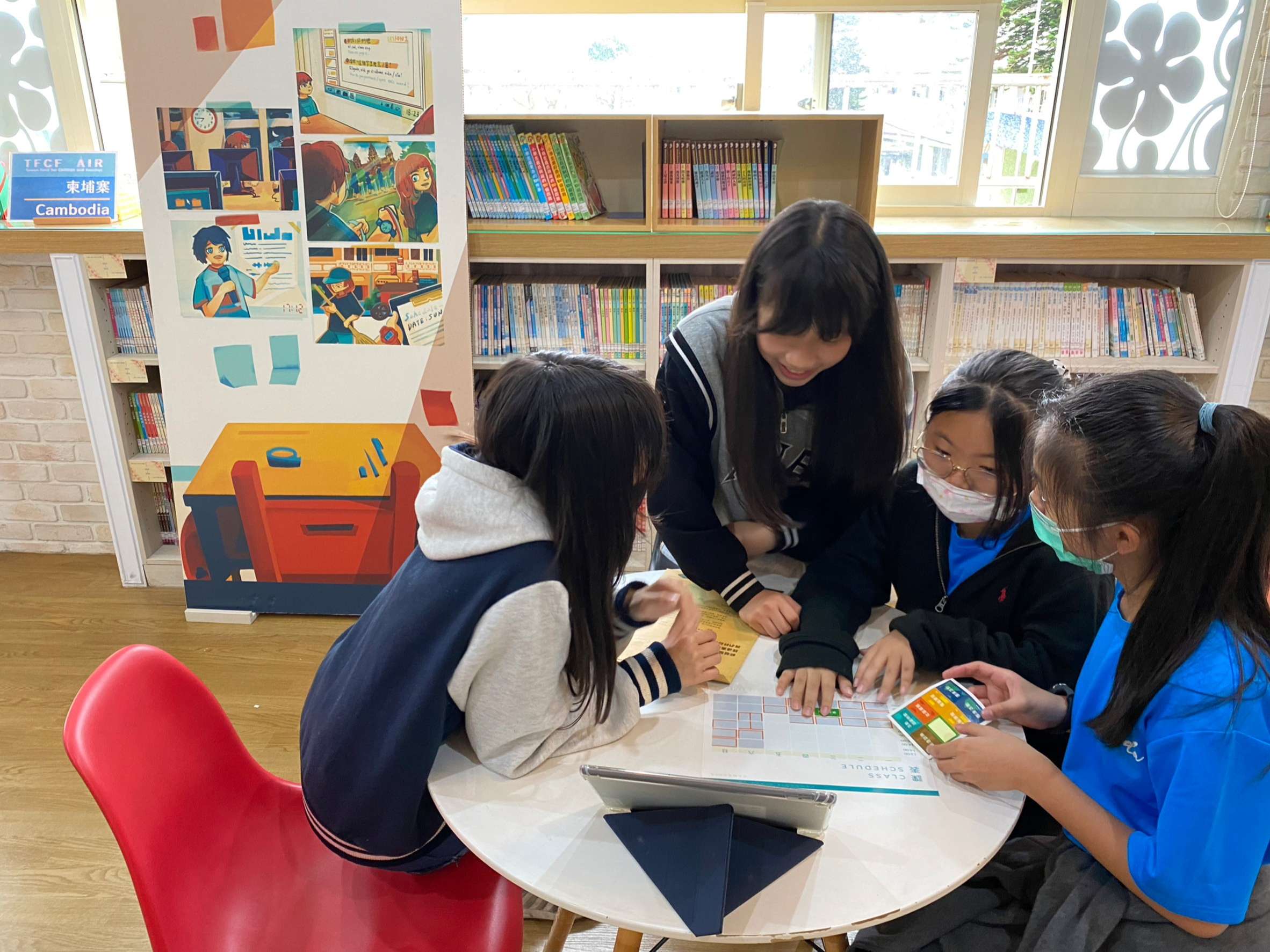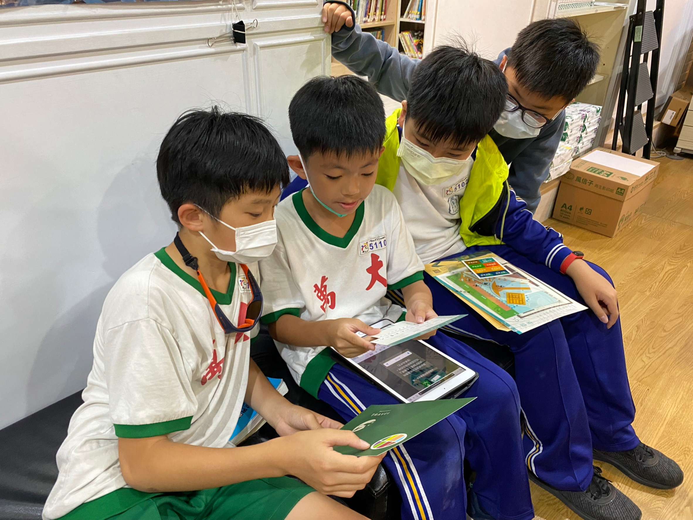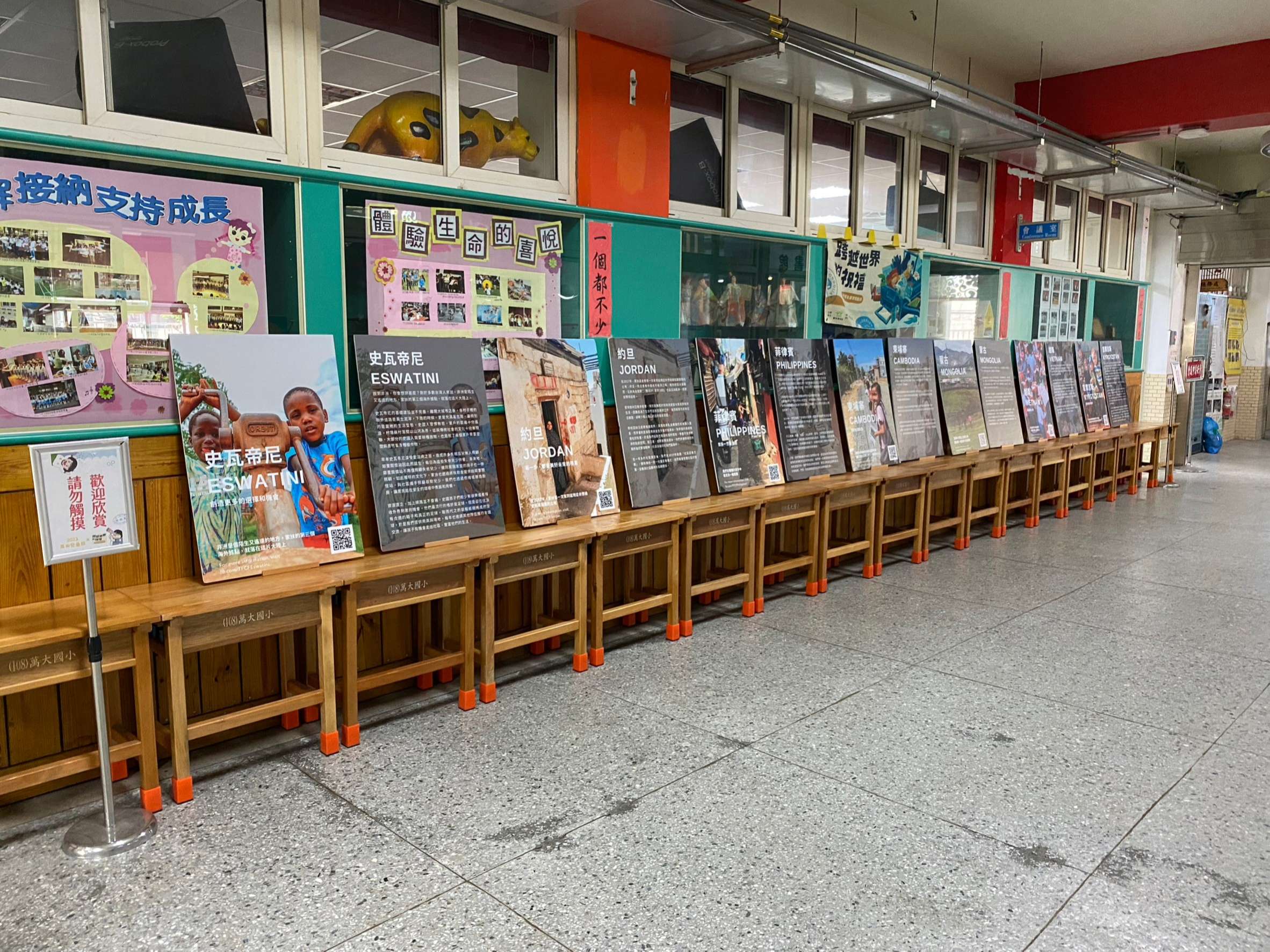 其中,「跨越世界的祝福」展覽暨實境遊戲活動,是本次活動的重點之一。本校與家扶基金會合作,讓孩子們透過遊戲,了解國際志工的服務意義與價值,並認識臺灣NGO組織如何在其他國家提供符合當地需求的協助。小朋友在解謎的過程中玩得渾然忘我,結束後紛紛表示,「原來我們在臺灣那麼幸福。」「這次的遊戲讓我學到如何團隊合作,也讓我知道有許多國家需要幫助。」同時,展覽場景也在校內圖書館設置,供全校親師生在圖書館認識國際議題,也邀請家扶基金會、皮皮兒童劇團蒞校宣導兒童權益及反霸凌觀念。
