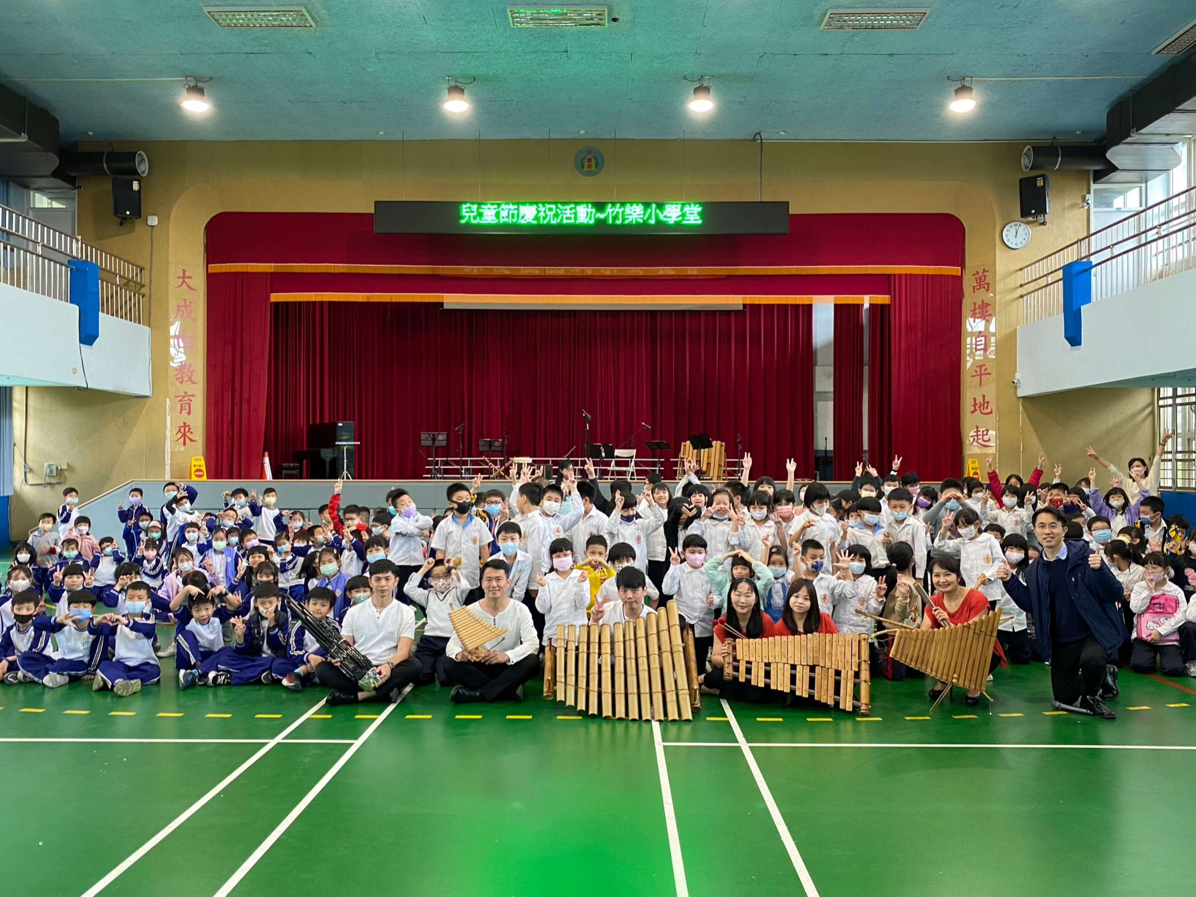 此外,萬大國小也設計了「萬大童樂會」的活動,讓學生們發揮創意,用點歌單向自己最有感覺的人事物傳遞心裡的話,反轉「你聽過『囝仔人有耳無嘴嗎?』」這句話。透過學生司儀在午餐時間用全校廣播唸出小朋友與師長投稿的點歌單,真誠童趣的留言內容讓全校洋溢在歡樂之中。從學生選歌的類型,也可以認識他們關注的流行文化及接收來源,以Kpop、日本流行動漫、臺灣的網紅自創曲、短影音平台為主。當點歌一播出,全校即歡聲雷動,情意傳遞大成功!另外也邀請了臺灣竹樂團蒞校演出,帶來小朋友耳熟能詳的樂曲,並體驗竹樂器的演奏,徜徉在充滿藝文氣息的兒童節。
