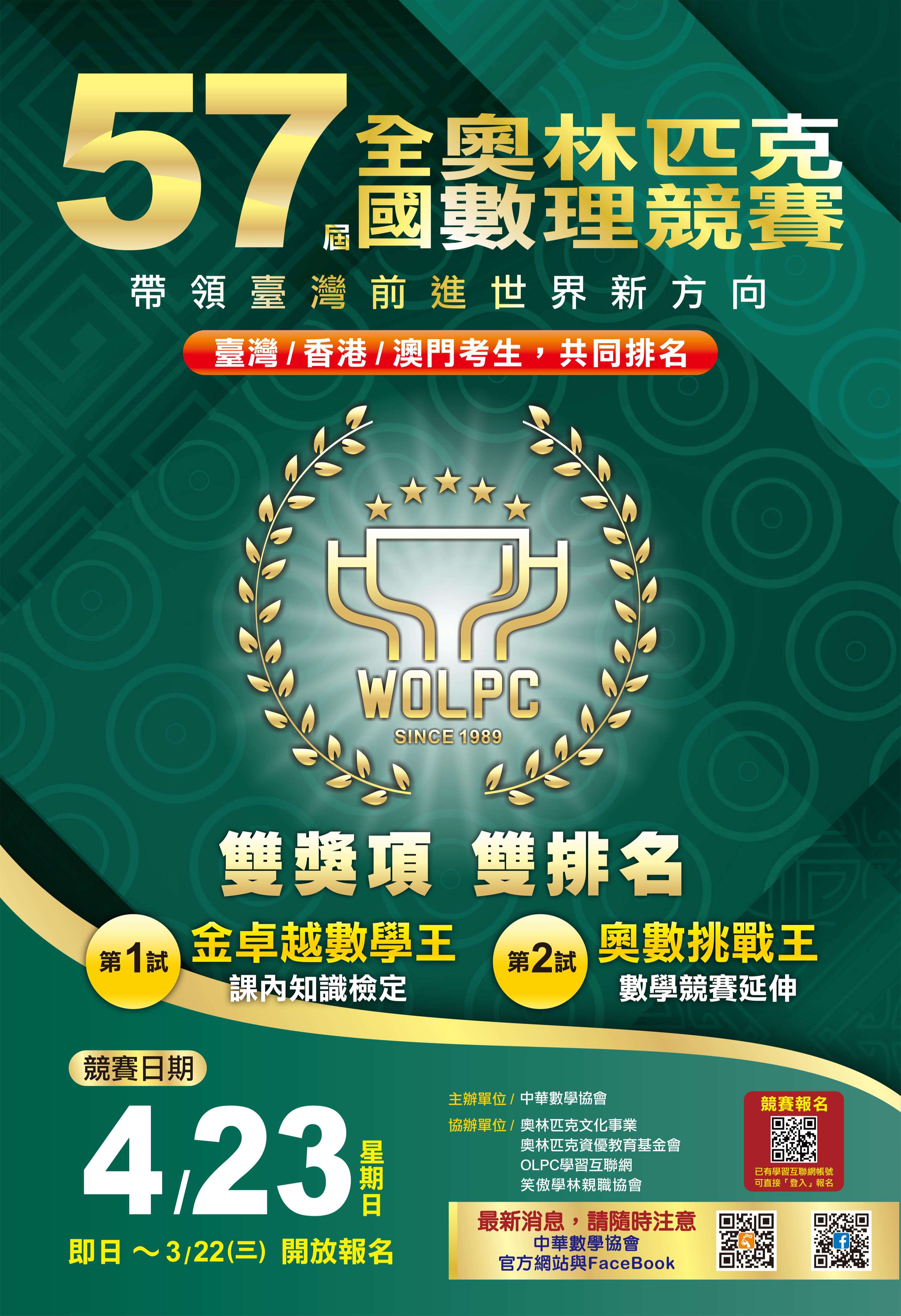 二、檢附「第57屆全國奧林匹克數理競賽」競賽活動簡章,供學校參閱。