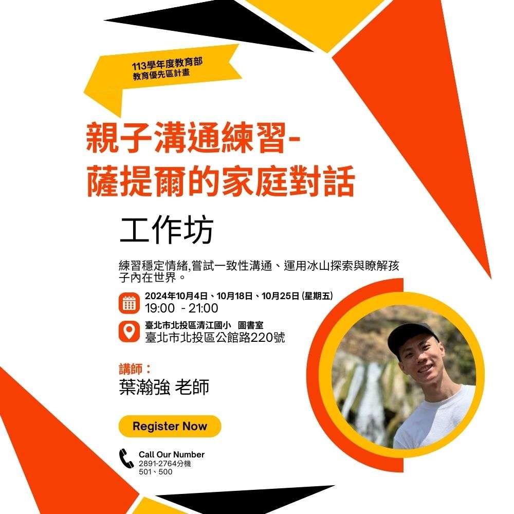 三、本活動錄取人數每場次30名 (清江國小家長優先錄取),如報名人數眾多,則採抽籤方式辦理。