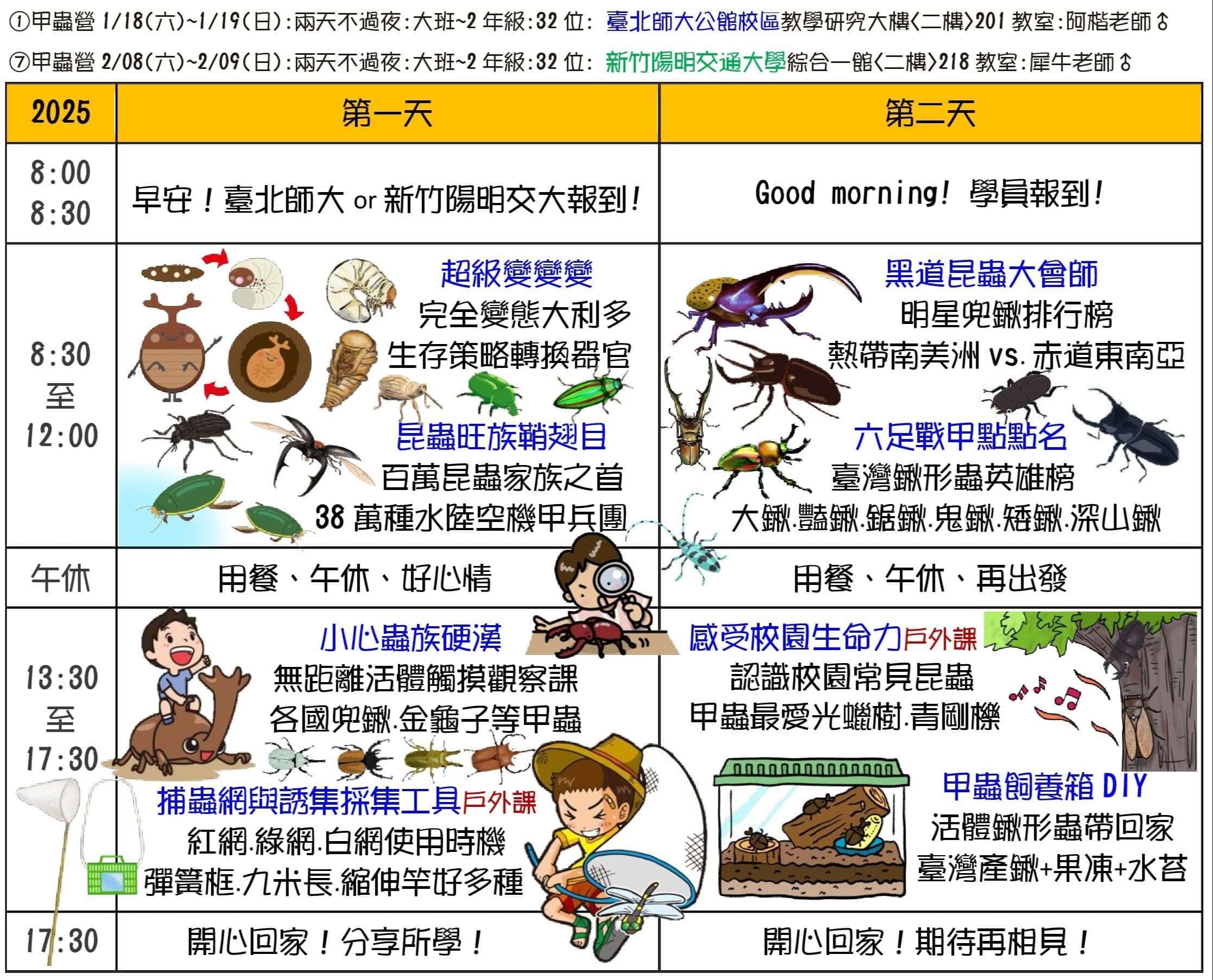 說明:愛上大自然文教將於114年寒假辦理【大樹聚島航去】2025生態素養冬令營共七個梯次,暨參展2025第六屆臺灣國際昆蟲博覽會活動。
