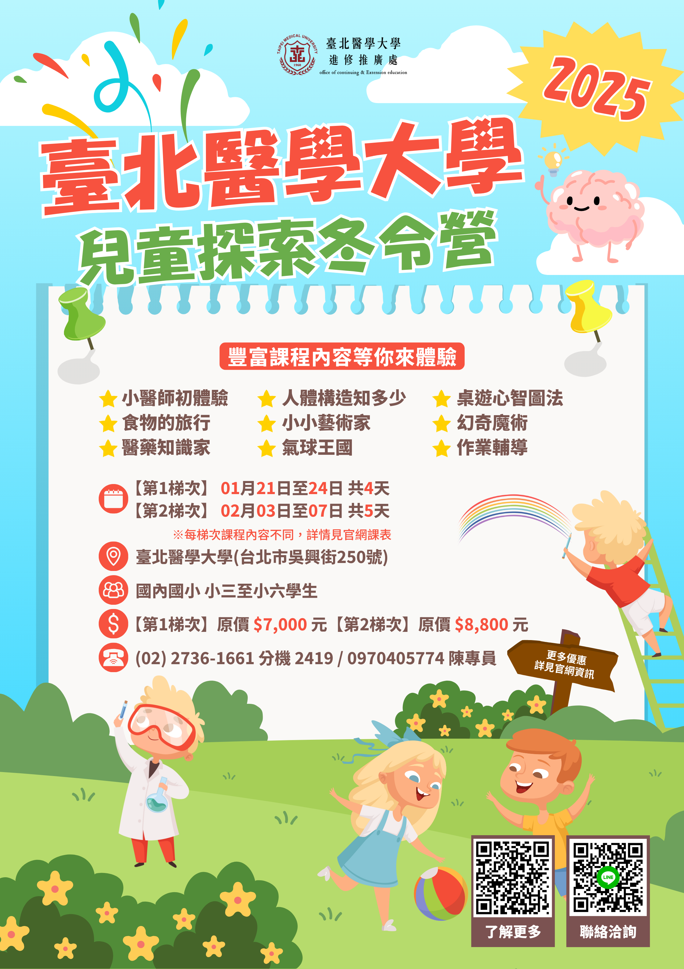 主旨:臺北醫學大學辦理「2025臺北醫學大學兒童探索冬令營」,敬請惠予公告週知並鼓勵學生踴躍參與,請查照。