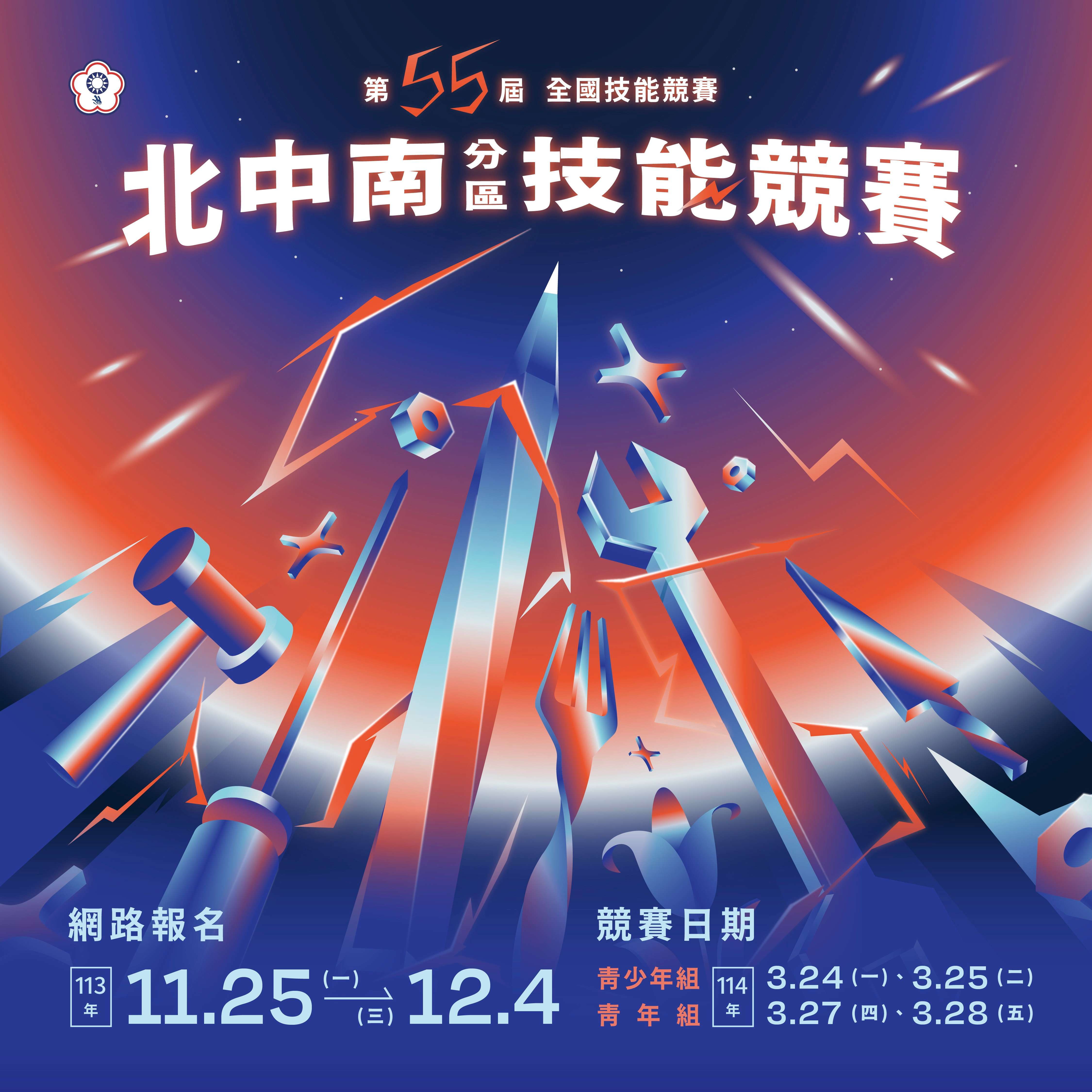 二、為推廣技職教育勞動部每年舉辦全國技能競賽,第55屆分區技能競賽訂於114年3月24日至3月29日於北、中、南三區共同舉辦,並訂於113年11月25日至12月4日開放網路報名,簡章詳洽技能檢定中心官網賽最新消息(網址:https://www.wdasec.gov.tw)。