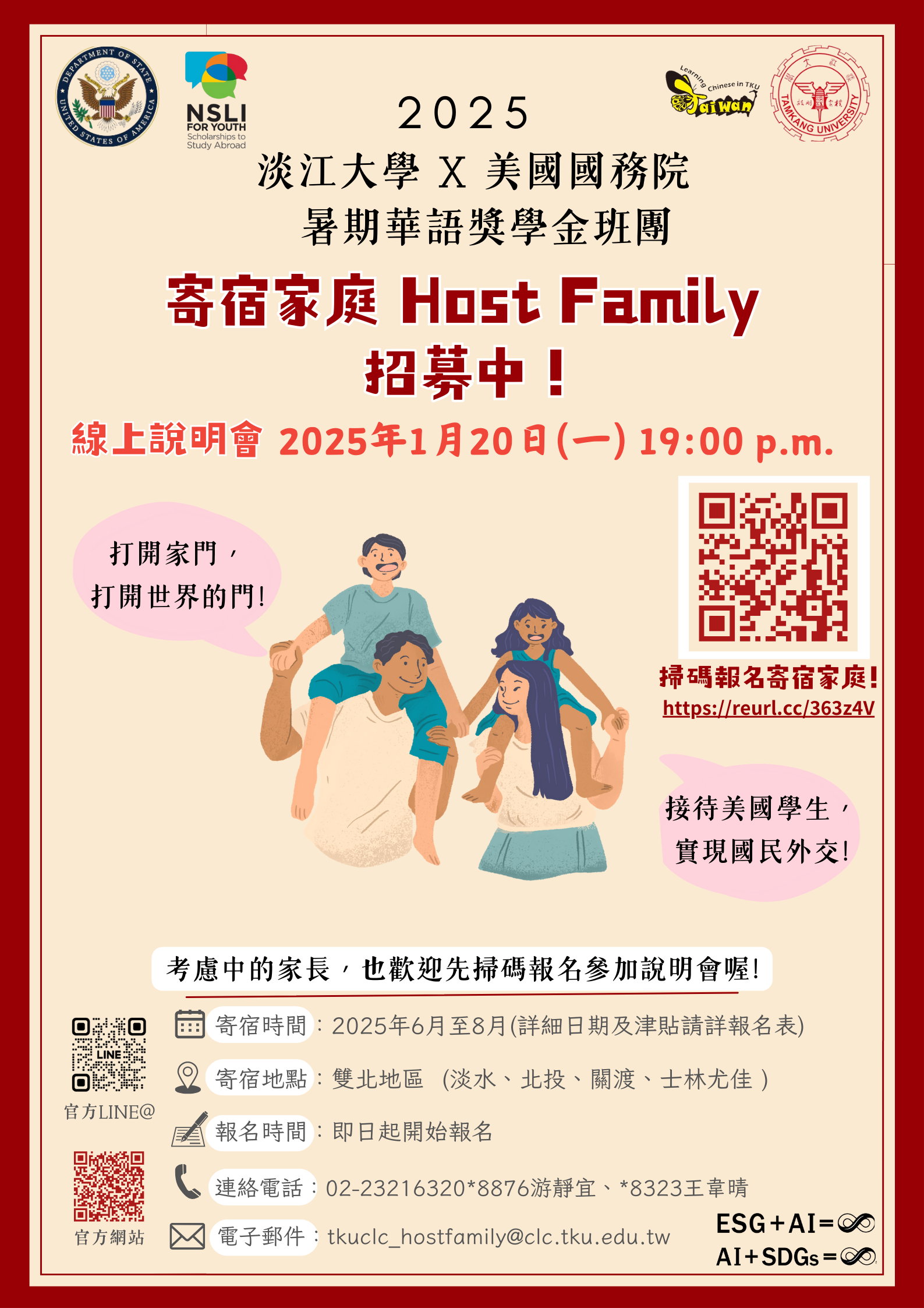 五、寄宿家庭及線上說明會(114年1月20日晚上7時)報名網址:https://reurl.cc/363z4V,