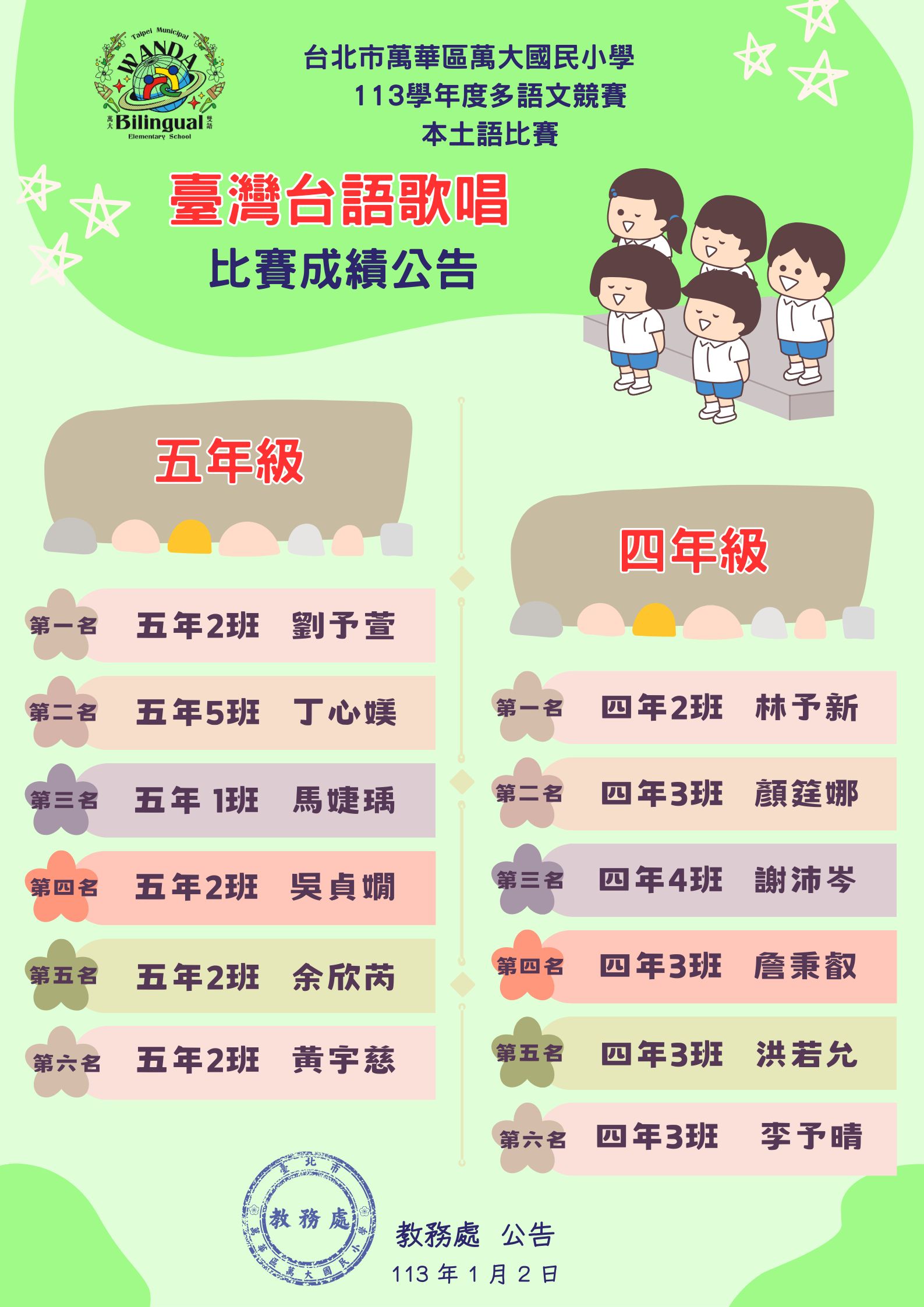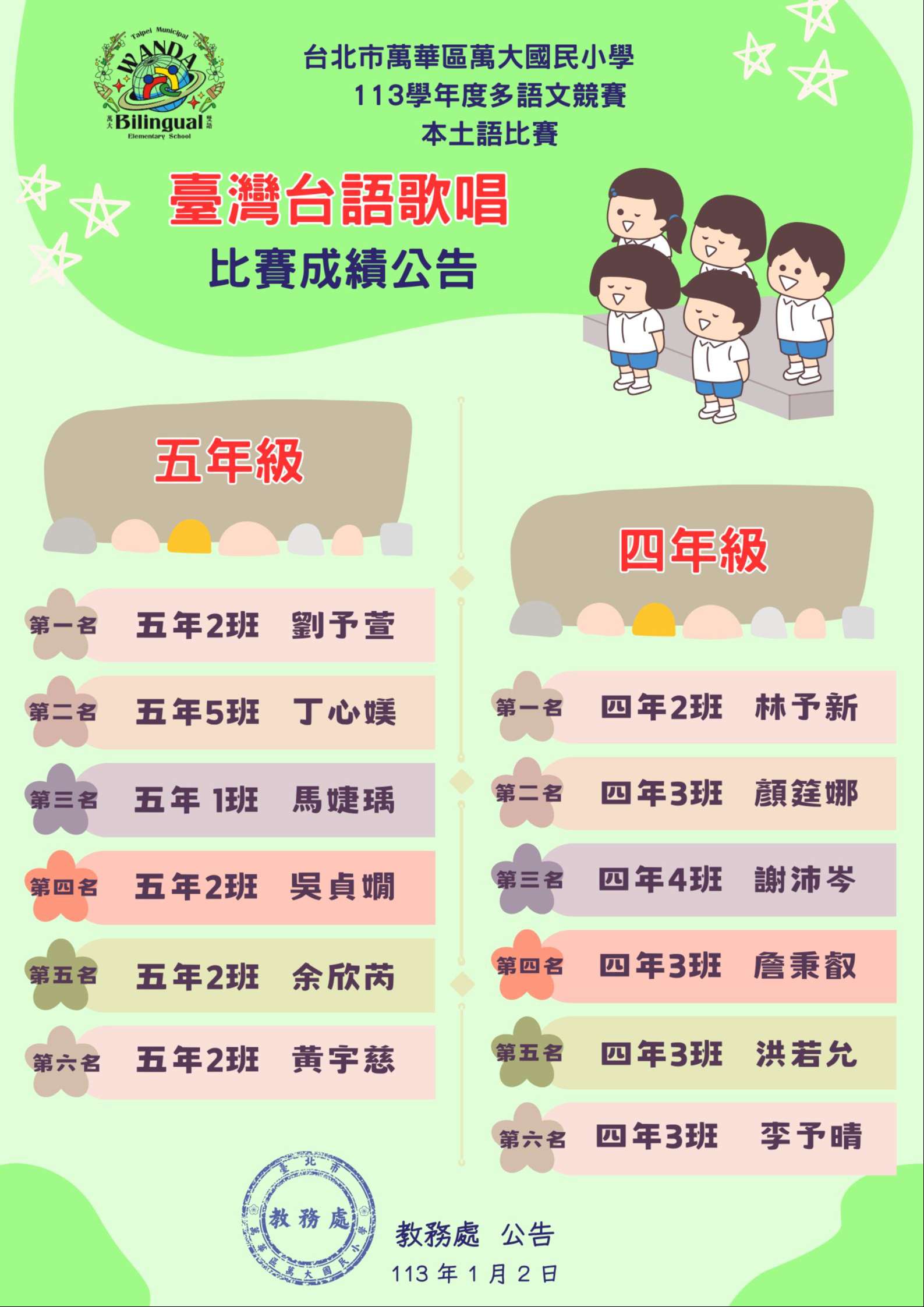 🎉🏆✨ 113學年度 四、五級校內多語文競賽 🎉🏆✨