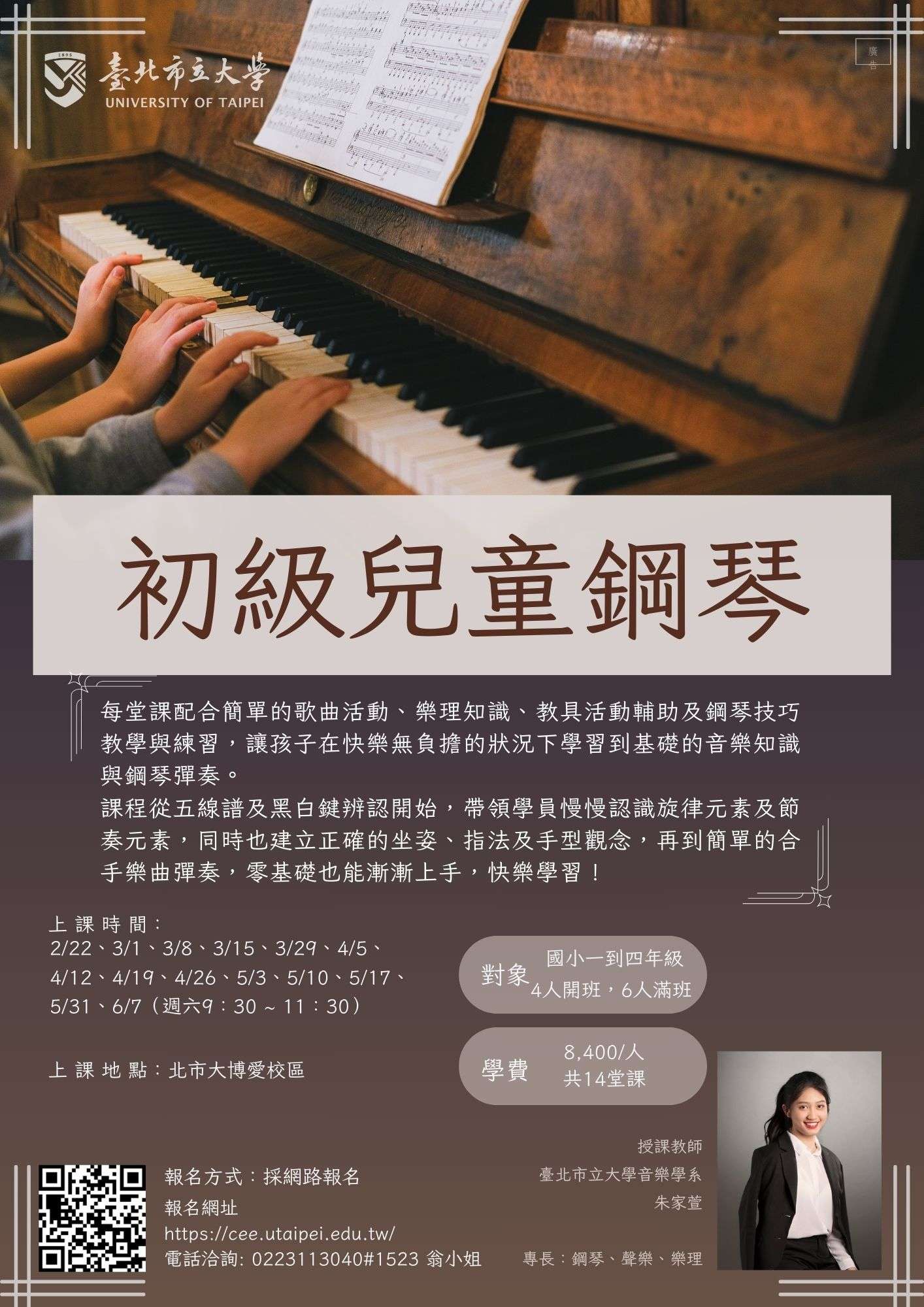 主旨:有關本校博愛校區辦理113學年第2學期「初級兒童鋼琴班」課程,詳如說明,請查照。