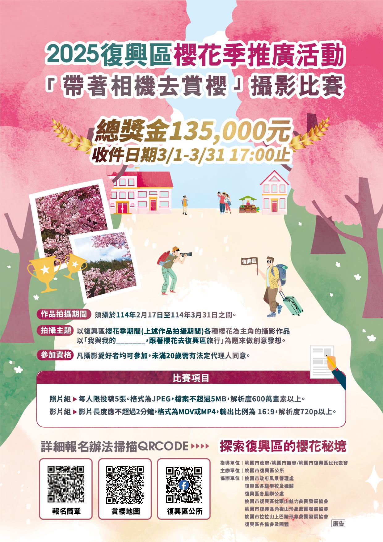 桃園市復興區公所辦理114年「2025復興區櫻花季推廣活動-帶著相機去賞櫻」攝影比賽宣傳海報1份