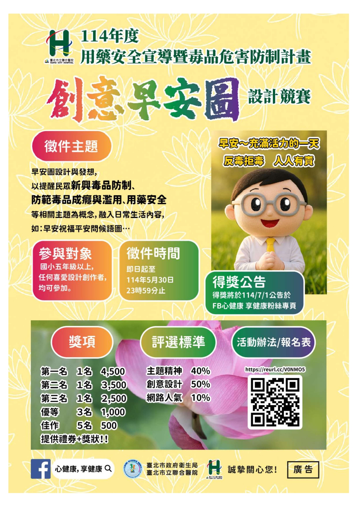 114年度用藥安全宣導暨毒品危害防制計畫「 創意早安圖設計競賽」活動