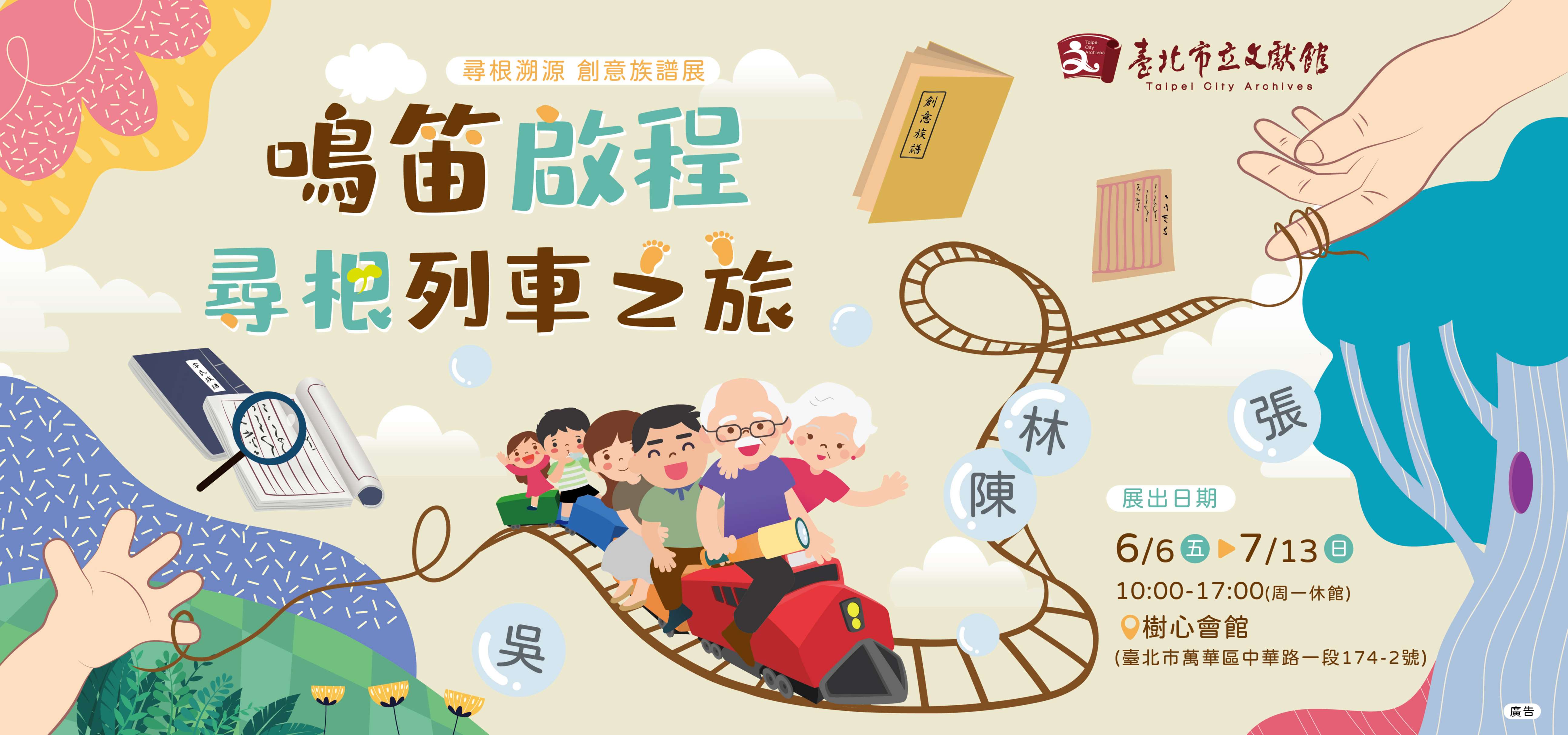 主旨:臺北市文獻館2025「鳴笛啟程~尋根列車之旅」創意族譜展,歡迎 師生蒞臨參觀。