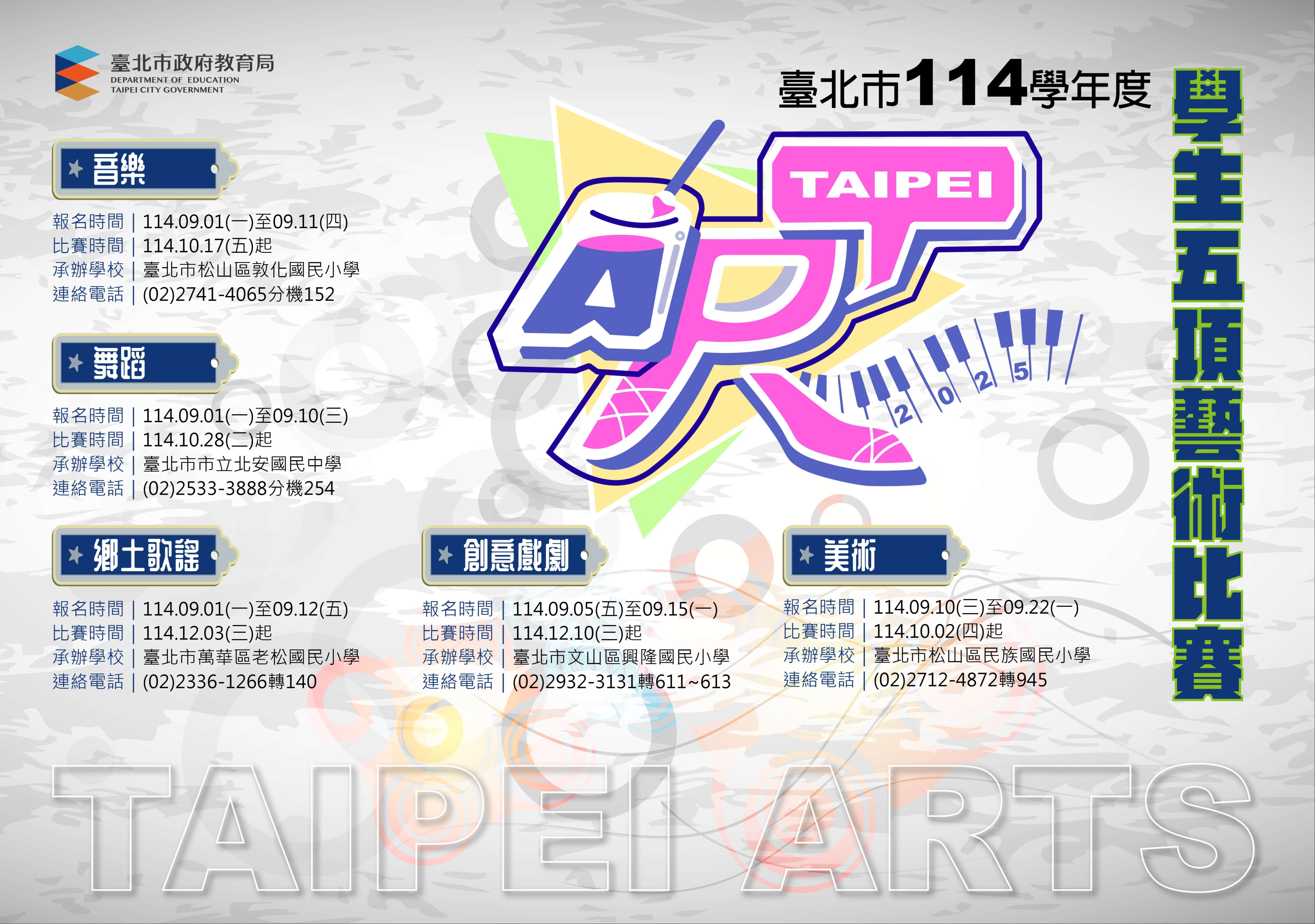 三、比賽日期:確定日期及賽程將於114年9月26日(星期五)公告於臺北市五項藝術比賽網站。