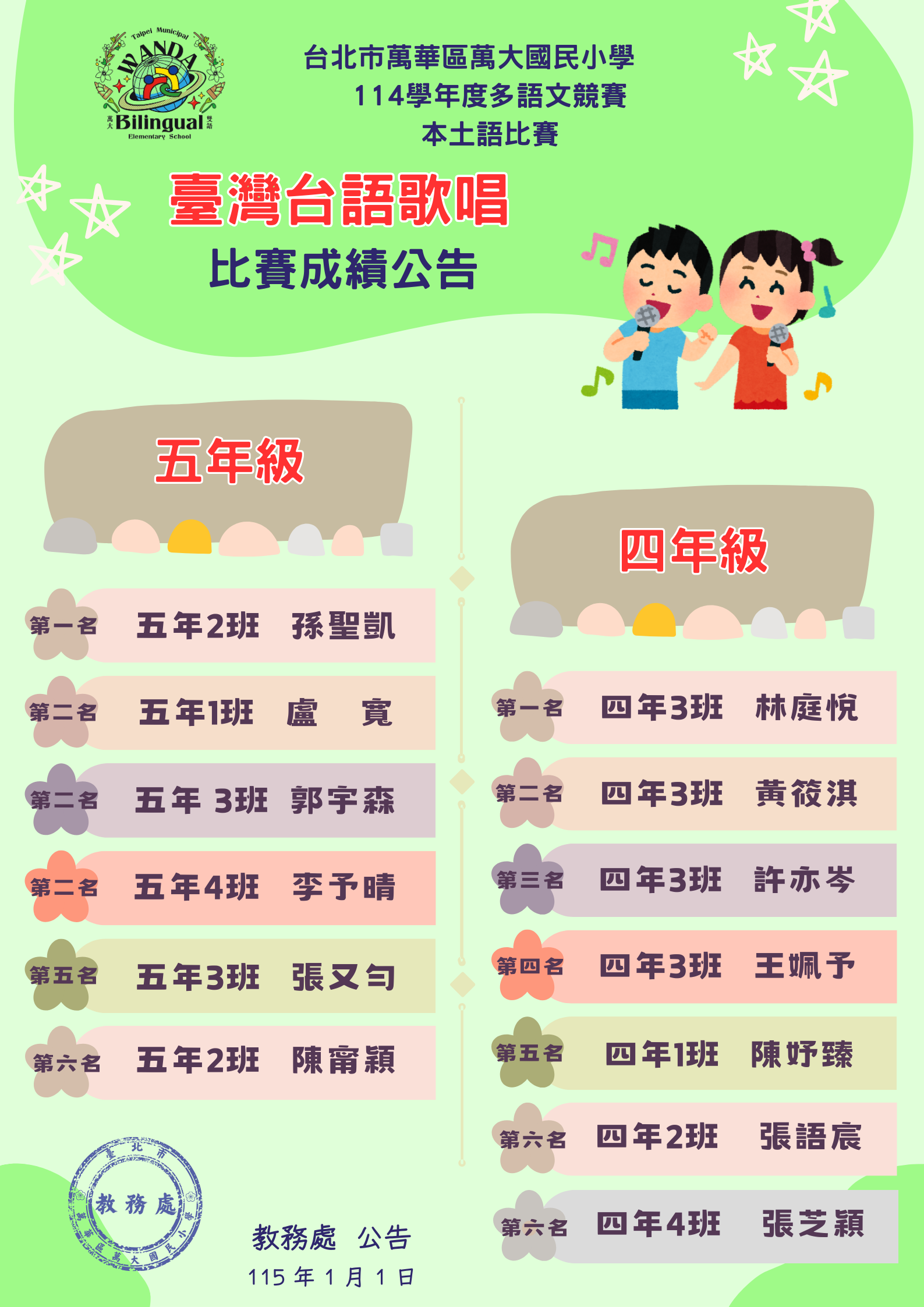 🎉🏆✨ 114 學年度 四、五級校內多語文競賽 🎉🏆✨