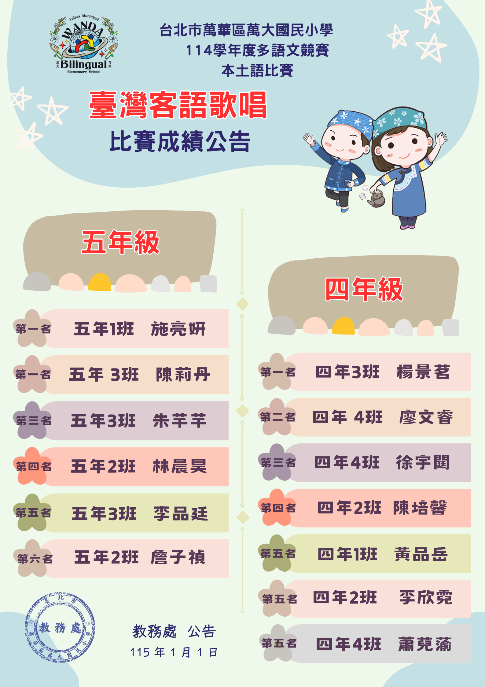 🎉🏆✨ 114 學年度 四、五級校內多語文競賽 🎉🏆✨