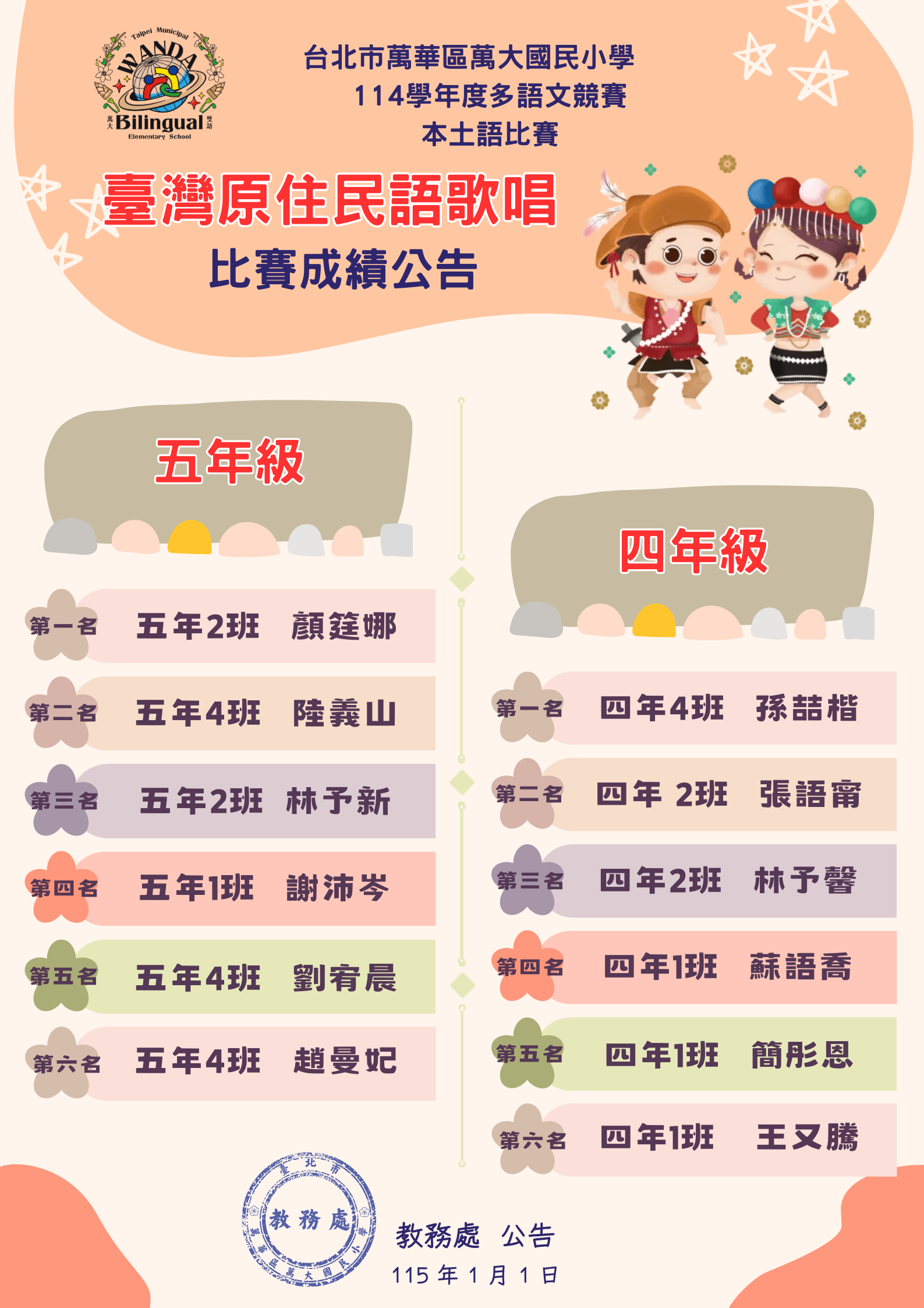 🎉🏆✨ 114 學年度 四、五級校內多語文競賽 🎉🏆✨