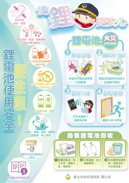 為提升民眾防災意識、降低災害發生機率,強化民眾自助 能力,請協助運用所屬宣導管道,進行「居家防火—鋰電 池及爐具安全」宣導