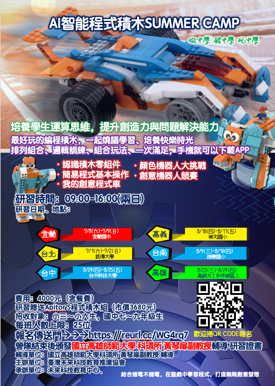 三、費用:4000元(含餐費)研習贈送Apitor S程式積木組 (市價3680元)。