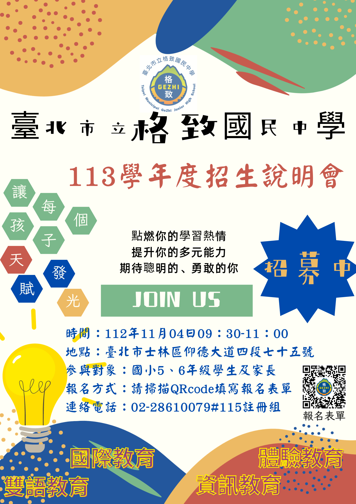 2、0930-1030:學校特色說明暨座談會(Q&A)。