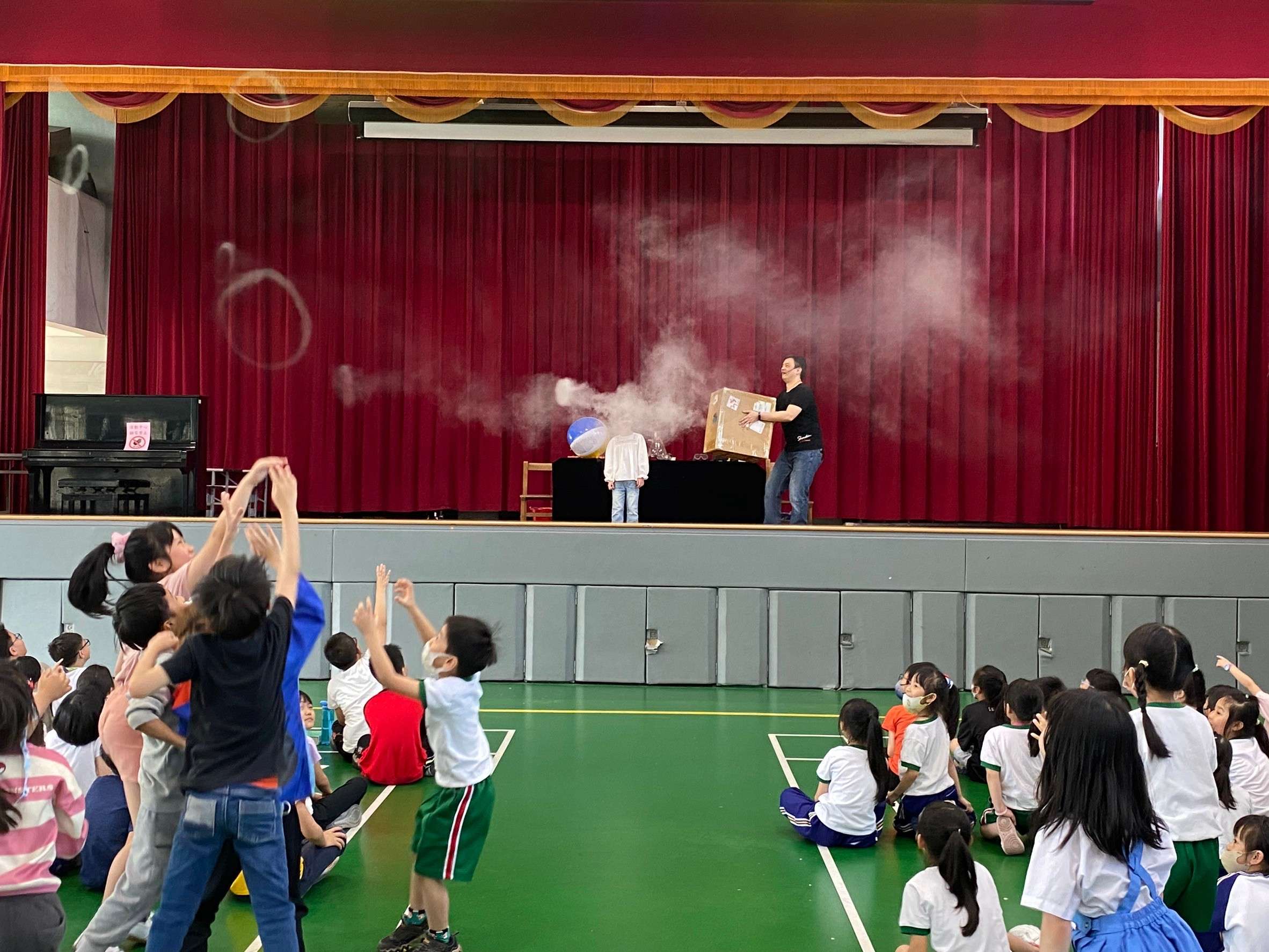 此外,在AI與科技發展蓬勃的時代,我們希望透過充滿趣味性又不失科學原理介紹的科學表演及科學闖關遊戲,引導孩子們理解科學不僅是一門學科,呈現科學在我們生活中的應用情境,體現科技之母的原理與潛力,開啟學生未來的鑰匙。而在全校教師的事前指導下,學生能有效規劃上下課翻轉的自主學習時間並進行場地分流;翻轉時,除了運動和玩耍之外,也看到不少學生熱烈參與科學小遊戲的擺攤體驗、家長會的益智問答擺攤、自行安排觀察植物、自製花盆、自製果醬及烘焙點心等活動,或是到圖書館閱讀及欣賞海底總動員的動物相關電影,都可見學生好好玩科學,發掘科學好好玩的一面。